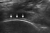 软骨表面回声增强,与深面的骨性关节面强回声线形成“双轨征”。
