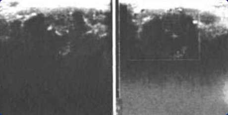 膝关节髌上囊扩张积液,可见团状强回声,并伴声影